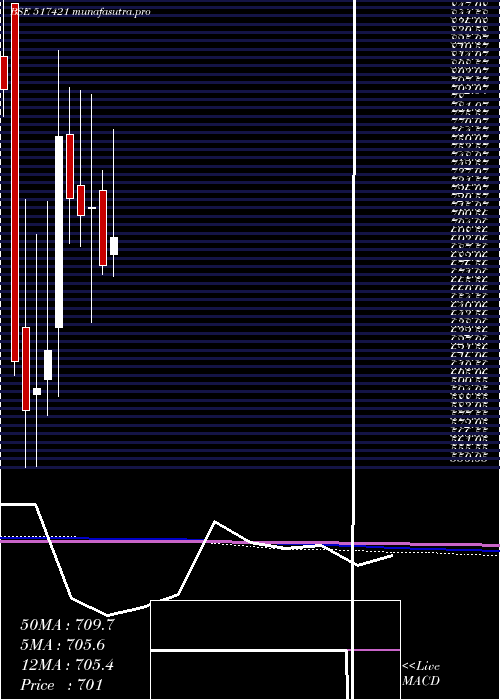 DMA period | DMA value | 5 day DMA | 707.41 | 12 day DMA | 707.03 | 20 day DMA | 702.86 | 35 day DMA | 703.98 | 50 day DMA | 711.26 | 100 day DMA | 724.73 | 150 day DMA | 697.32 | 200 day DMA | 694.79 | EMA (exponential moving average) of Bflygandhi 517421