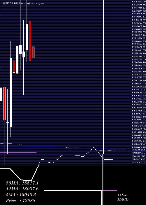 SMA period | SMA current | SMA prev | SMA prev2 | 5 day SMA | 13032.36 | 13039.22 | 13030.18 | 12 day SMA | 13146.6 | 13195.87 | 13237.68 | 20 day SMA | 13082.11 | 13082.19 | 13094.5 | 35 day SMA | 13278.92 | 13312.42 | 13345.55 | 50 day SMA | 13549.09 | 13555.47 | 13561.38 | 100 day SMA | 13436.1 | 13433.44 | 13430.55 | 150 day SMA | 13163.59 | 13151.95 | 13137.71 | 200 day SMA | 12646.14 | 12639.33 | 12632.32 |