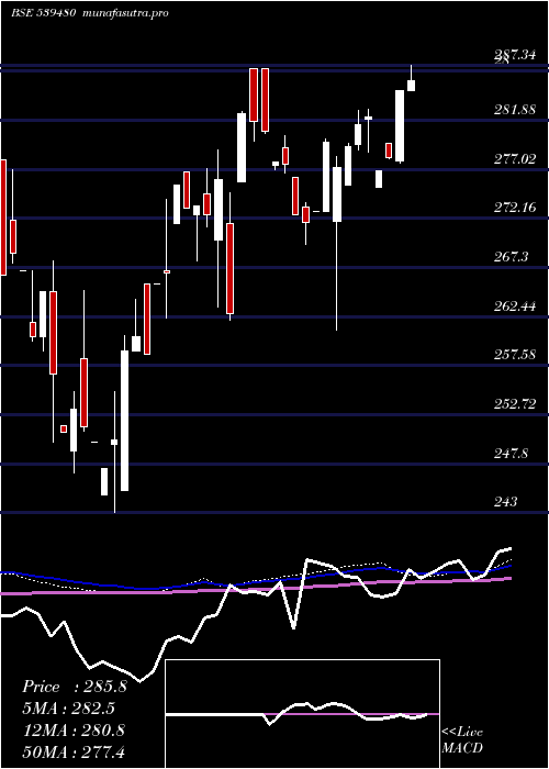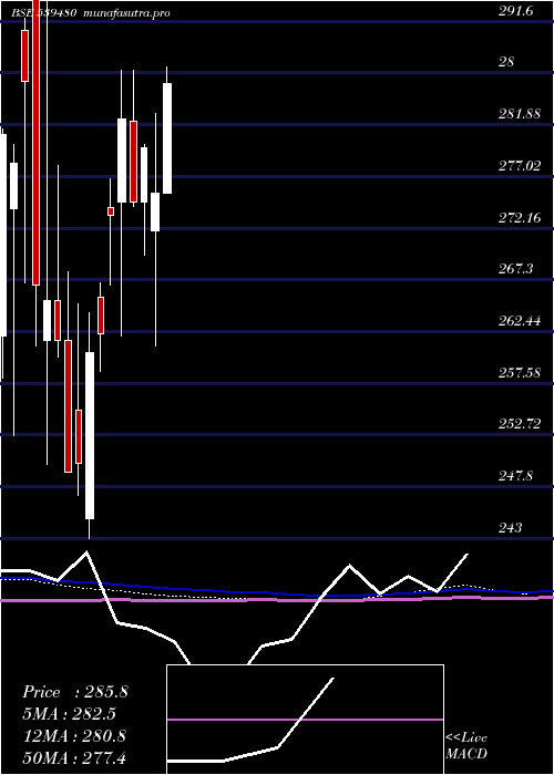 | DMA period | DMA value | | 5 day DMA | 281.79 | | 12 day DMA | 279.93 | | 20 day DMA | 279.97 | | 35 day DMA | 277.79 | | 50 day DMA | 278.05 | | 100 day DMA | 270.98 | | 150 day DMA | 270.13 | | 200 day DMA | 270.7 | EMA (exponential moving average) of Licnetfn50 539480