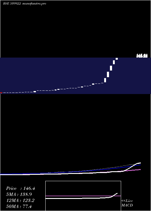 DMA period | DMA value | 5 day DMA | 140.03 | 12 day DMA | 121.76 | 20 day DMA | 103.28 | 35 day DMA | 80.31 | 50 day DMA | 66.63 | 100 day DMA | 43.42 | 150 day DMA | | 200 day DMA | | EMA (exponential moving average) of Rgil 539922