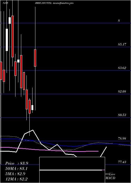 Daily price and charts and targets BrigadeHotel Strong Daily Stock price targets for BrigadeHotel BRIGHOTEL are 83.08 and 84.47 | Daily Target 1 | 82.04 | | Daily Target 2 | 82.73 | | Daily Target 3 | 83.433333333333 | | Daily Target 4 | 84.12 | | Daily Target 5 | 84.82 |