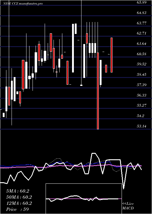 DMA period | DMA value | 5 day DMA | 60.23 | 12 day DMA | 59.93 | 20 day DMA | 60.21 | 35 day DMA | 60.39 | 50 day DMA | 60.37 | 100 day DMA | 59.77 | 150 day DMA | 58.31 | 200 day DMA | 57.98 | EMA (exponential moving average) of Comcast Corporation CCZ