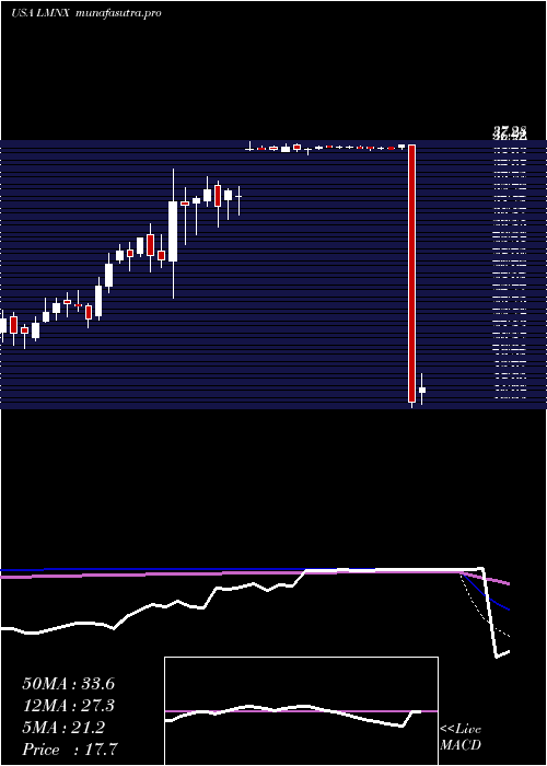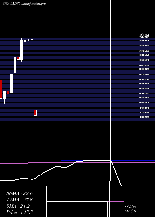 DMA period | DMA value | 5 day DMA | 24.93 | 12 day DMA | 31.86 | 20 day DMA | 33.82 | 35 day DMA | 35.13 | 50 day DMA | 35.6 | 100 day DMA | 34.83 | 150 day DMA | 32.2 | 200 day DMA | | EMA (exponential moving average) of Luminex Corporation LMNX